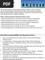 Free 8 Management Consultant Job Description Samples In Ms Word Pdf from images.sampletemplates.com Financial advisors can help individuals and companies reach their financial goals sooner by providing their clients with strategies and ways to create more wealth, reduce costs, or eliminate debts. Assistant financial advisor resume headline : Financial analyst job description guide. Ambitious people who don't want their careers to be limited by earning potential or corporate ladders. The job further involves undertaking market research and making recommendations concerning the products and services that suit customer tastes and preferences. • it is important that the financial advisors and administrators work well together as a strong team, offering assistance to clients irrespective of Financial advisers can either be restricted or independent. Providing strategic advice across a variety of financial products and services assessing client's overall financial picture, understand their needs and develop a solid financial plan guiding clients towards a profitable and secure financial decision